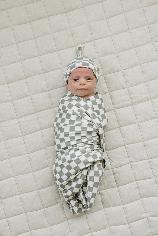 Light Green Checkered Bamboo Stretch Crib Sheet