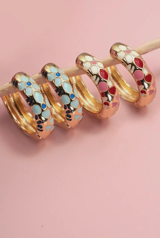 Flower Hoop Earrings - Blue
