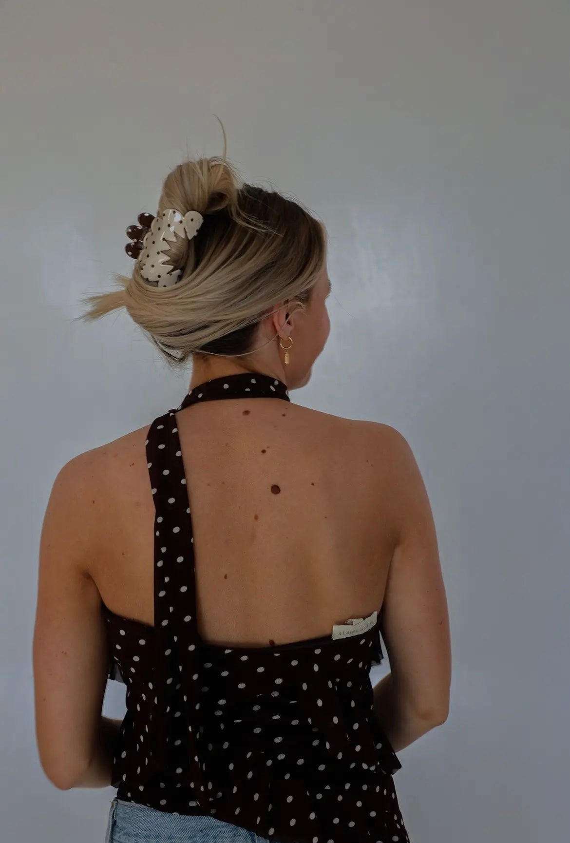 Coming back in our best selling style, this claw is a polka dot loving girls dream. With the cutest arch shape of petals and contrasting polka dot coloring. And everything is pulled together with an engraved kaxi K. This is the cutest claw, you need it!