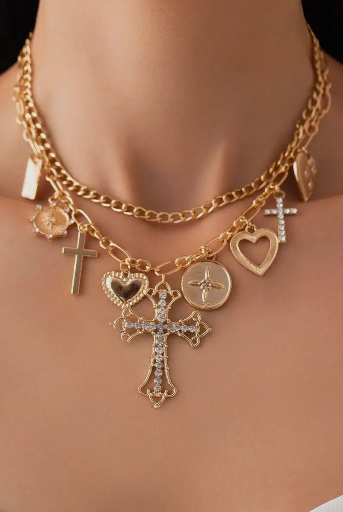 Cross Charm Necklace featuring Multi-Cross Charms in a Double-Layered Design is a stylish and meaningful piece that blends faith with fashion. Showcasing multiple delicate cross charms on two beautifully layered chains, this necklace adds depth and dimension to any look.