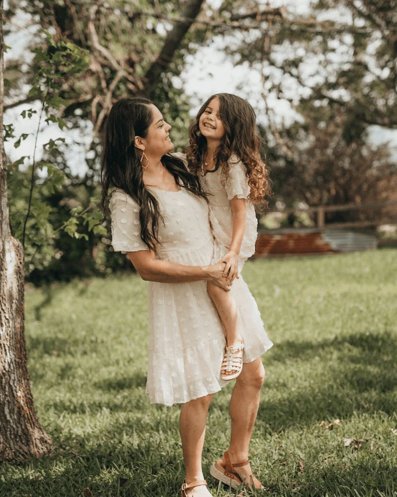 Elegant takes on a whole new meaning with our Eden Mommy & Me dress! With an adorable cut and short sleeves, this dress will bring you from Spring to Summer to Fall seamlessly. Wear with little sandals and a bow for a classic look, and mama can pair wedges and a cute bag for an equally stunning look! Whether you're going to brunch, a picnic, church, or anywhere in between, the Eden mom and me dress is a classic must have!