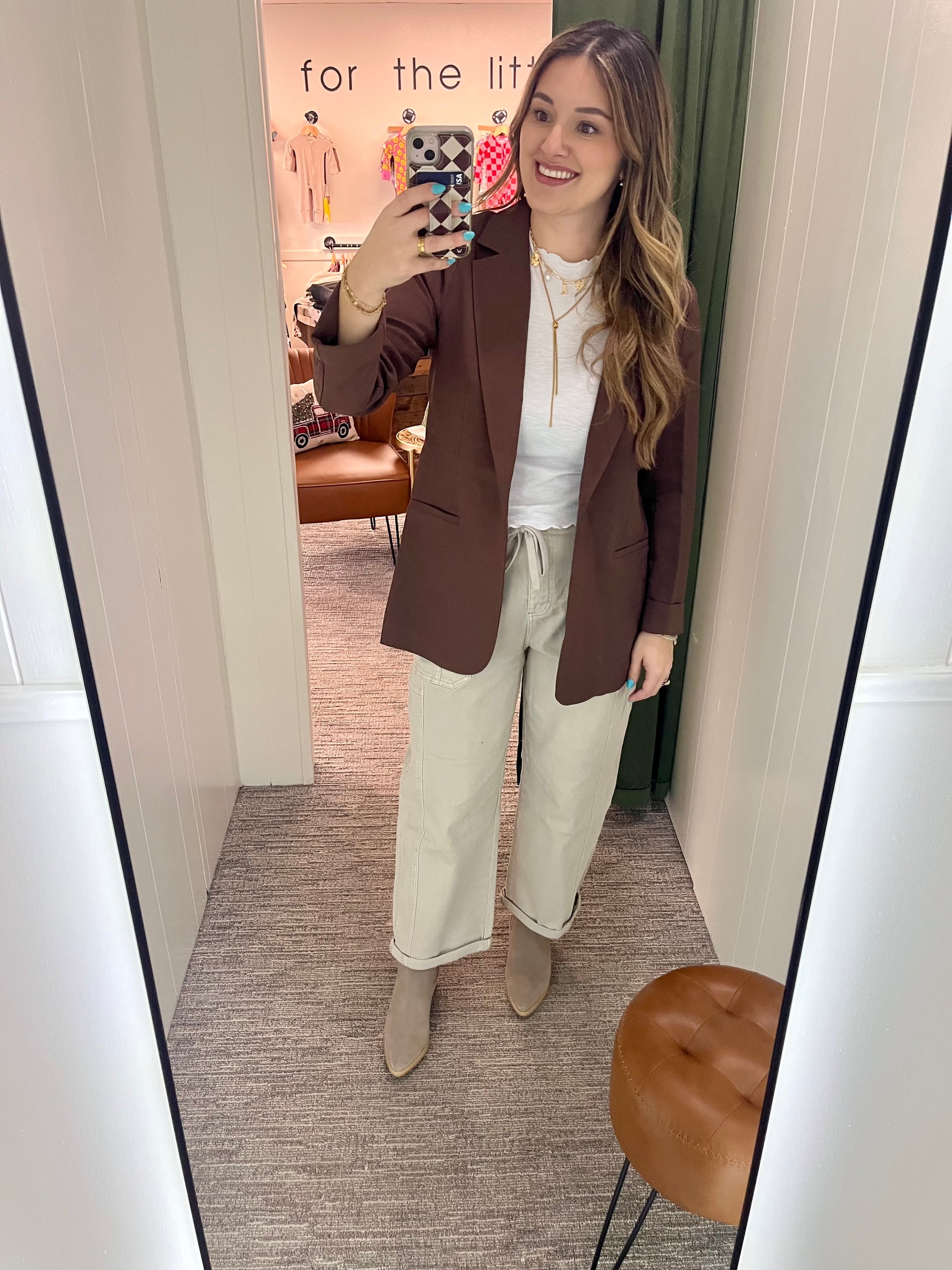 Our Eloise Blazer is a classic piece in a fun color, great for work!