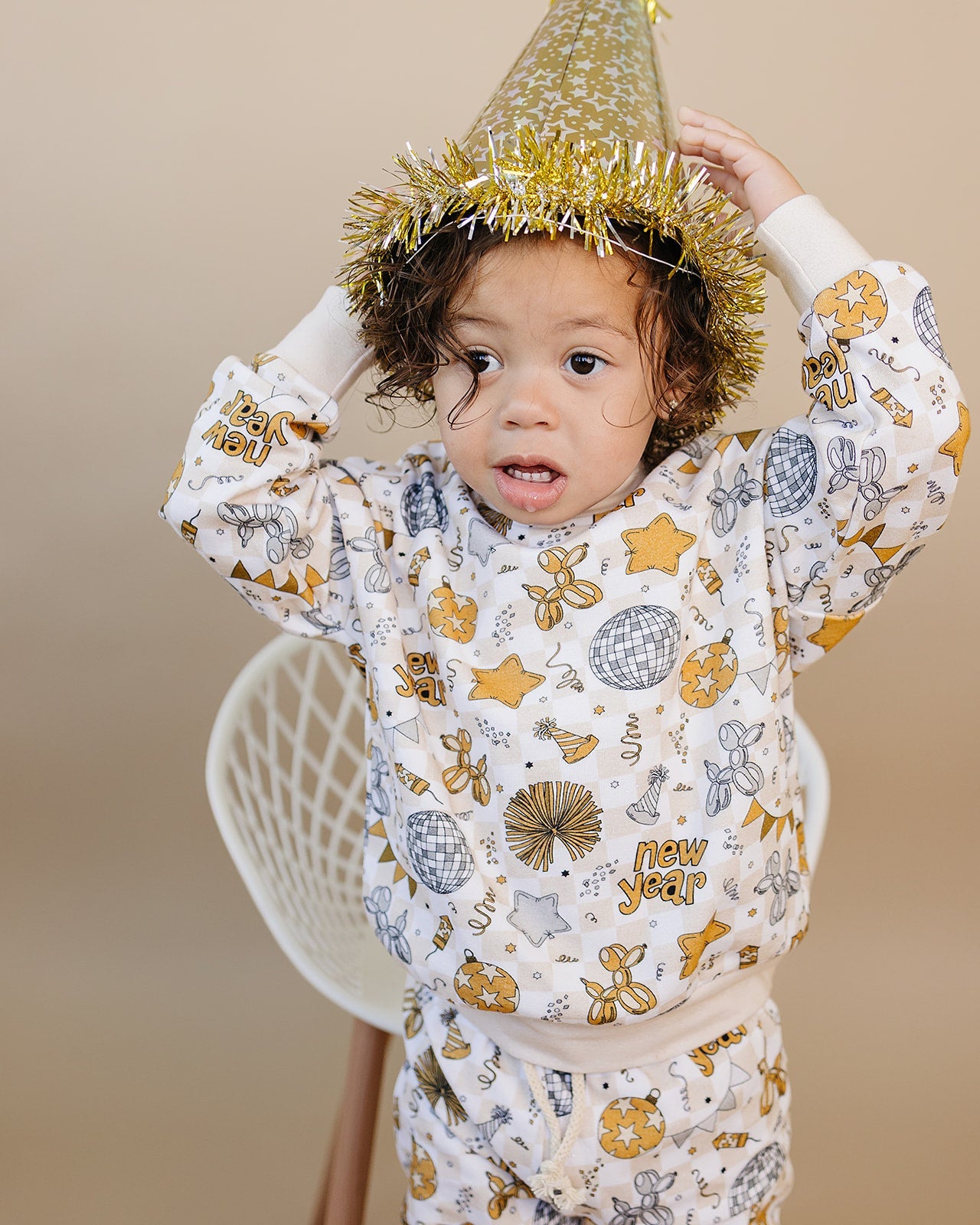 The Jogger Set New Year Vibes is made for celebrating in comfort and style. With a fun, gender neutral festive design and a soft cotton-spandex blend, it keeps your little one feeling cozy and looking cool. Whether ringing in the new year at home or out and about, it’s the perfect outfit for fresh starts and happy memories.