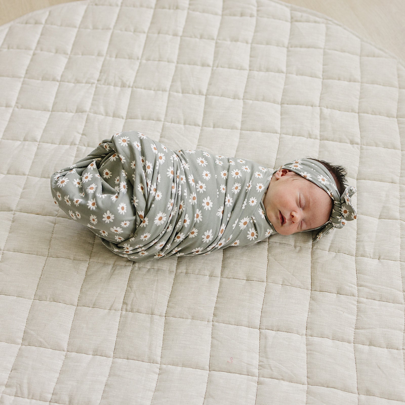 Light Green Daisy Bamboo Head Wrap