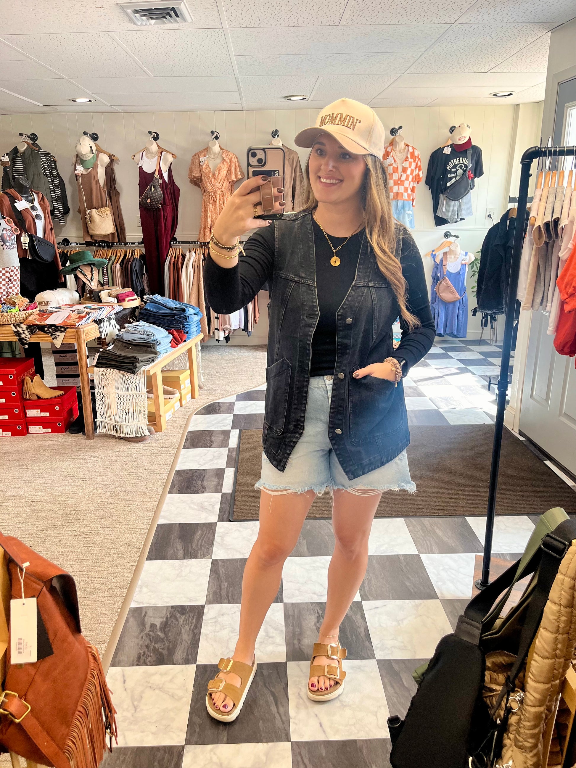 Our Lona Jean Vest is the perfect layering piece for your Fall wardrobe.