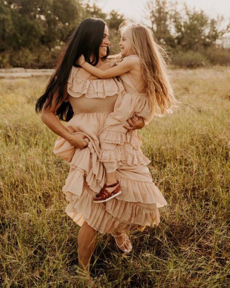 "This dress is absolutely stunning! My daughter and I wore it for our mommy and me photoshoot and they were everything I was hoping for! The stretch in the women's size also allowed me to wear it again for my maternity shoot! "