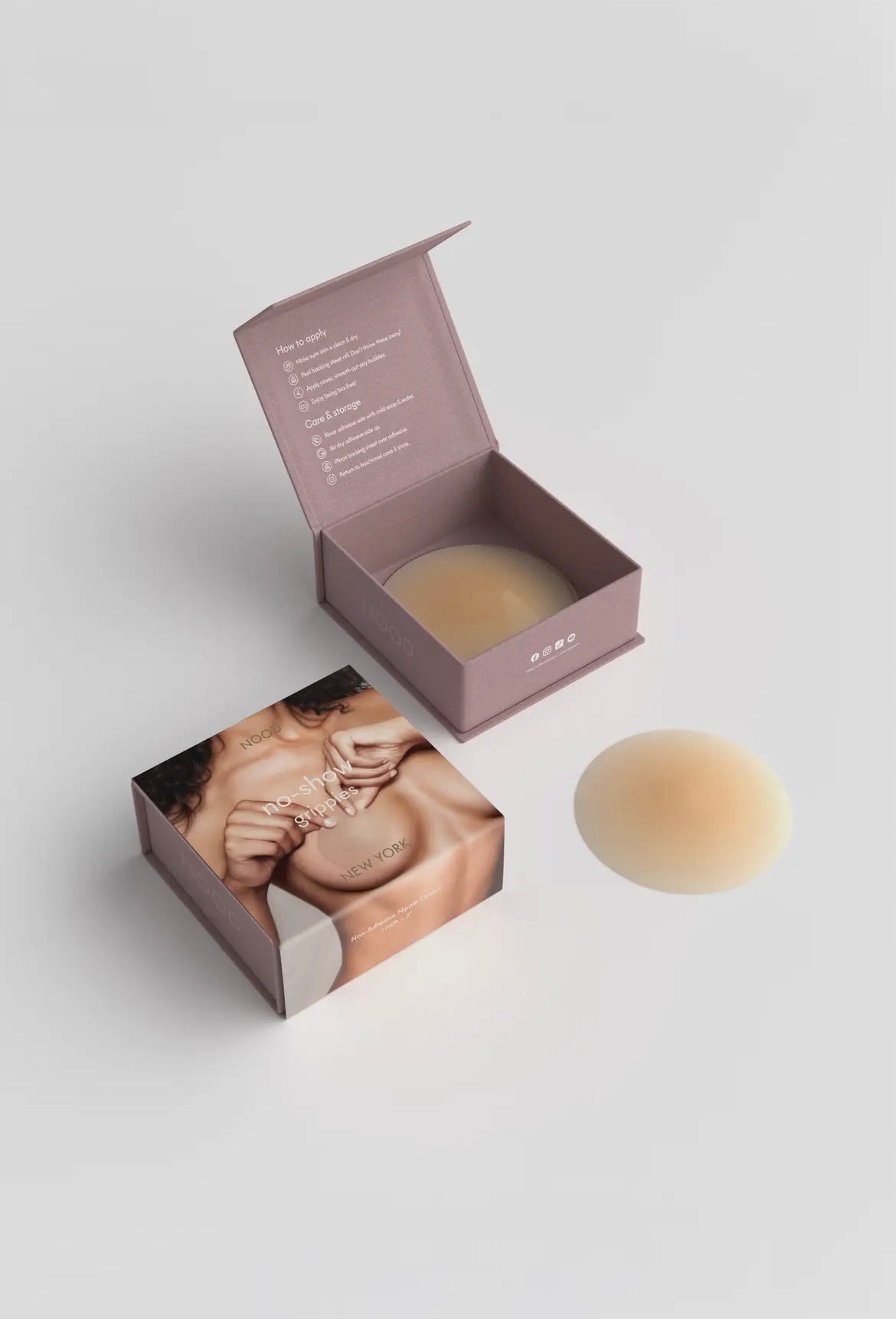 No-Show Grippies are made of our signature SkinFinish™ matte silicone and the unique texture bonds to your body with body heat. These adhesive-free nipple covers are best used under snug tops or as liners for seamless coverage and all day comfort.