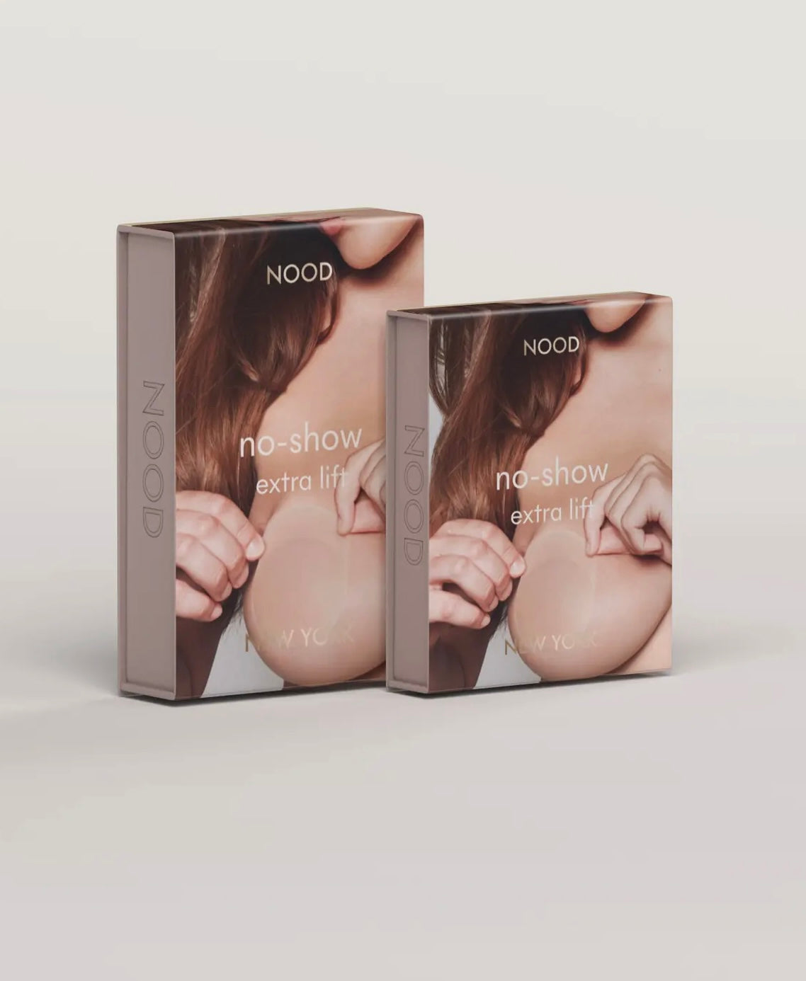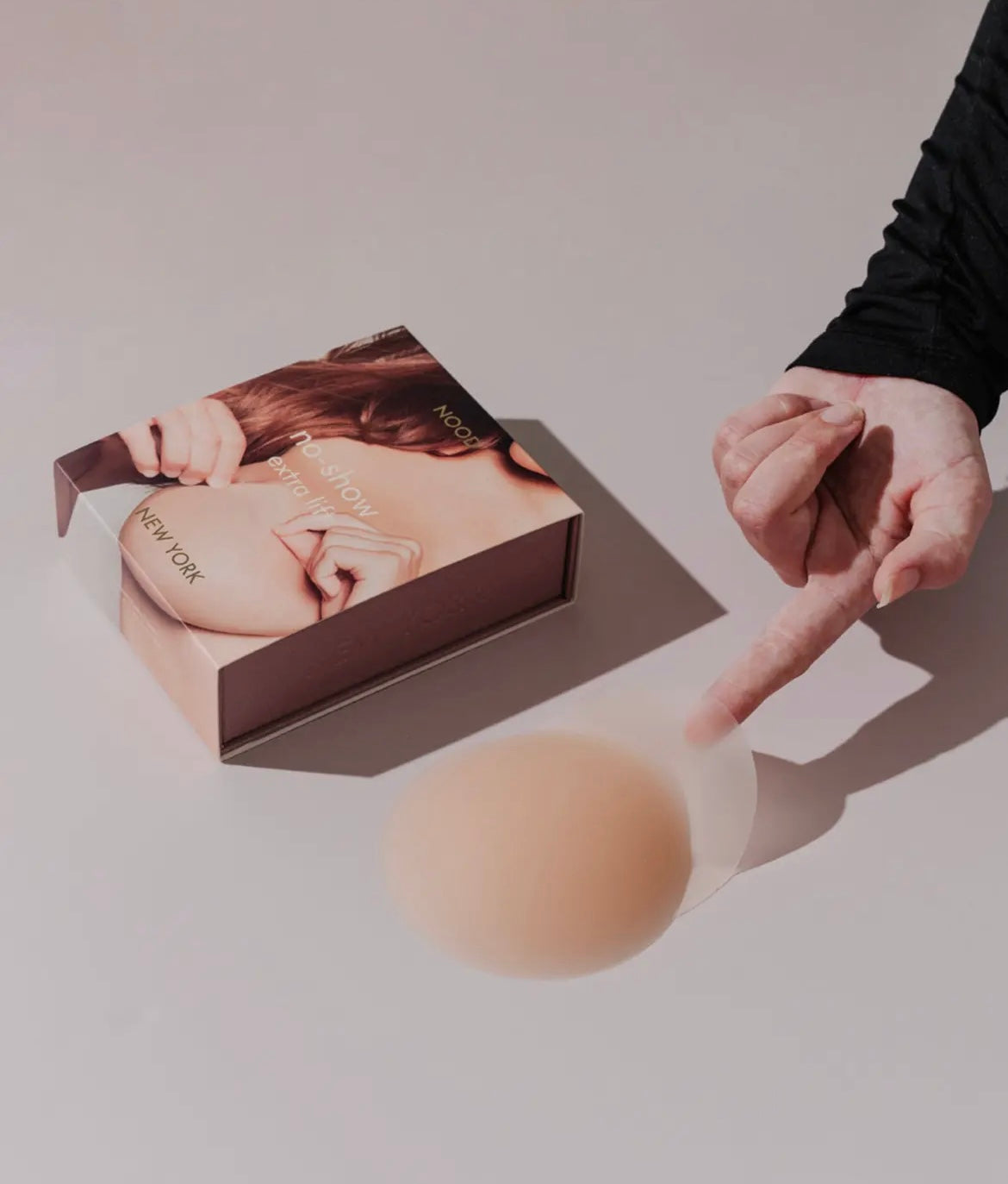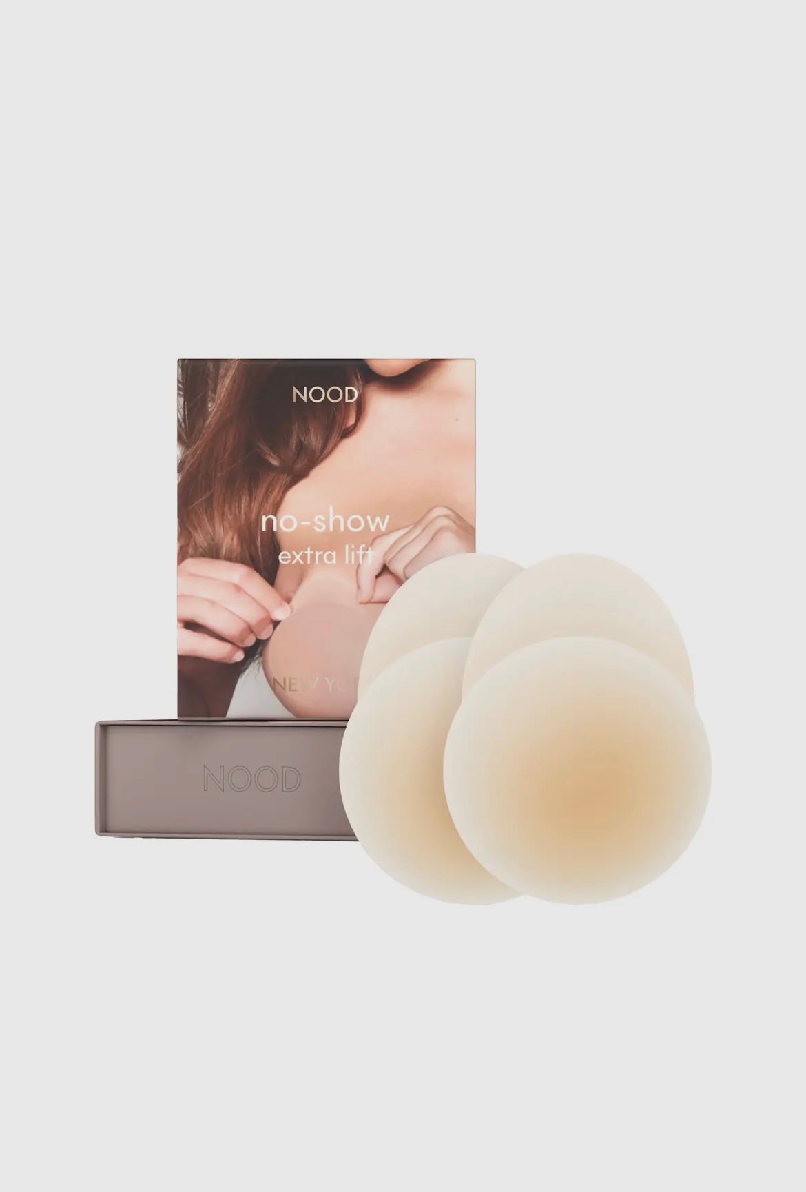 NOOD No-Show Extra Lift adhesive nipple covers give you a little lift without needing a bra. Made from SkinFinish™ matte silicone for a smooth seamless finish.