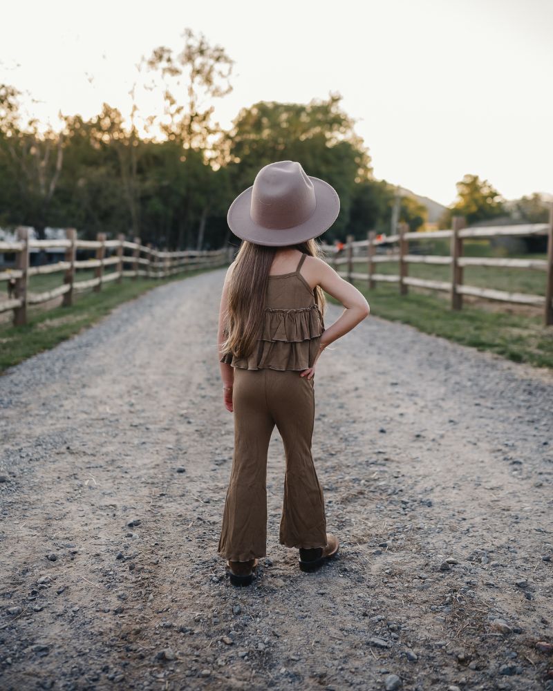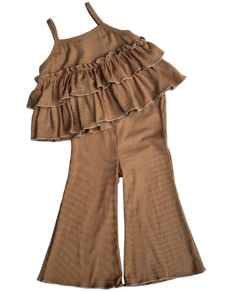 Sweet, stylish, and oh-so-charming! The Presley Ruffle Tank Two-Piece Set is the ultimate outfit for your little fashionista. Featuring a darling ruffle-tank and matching flare pants, this set is designed for both comfort and cuteness. Made from soft, breathable fabric, it’s perfect for playdates, outings, and twirling through the day in style!
