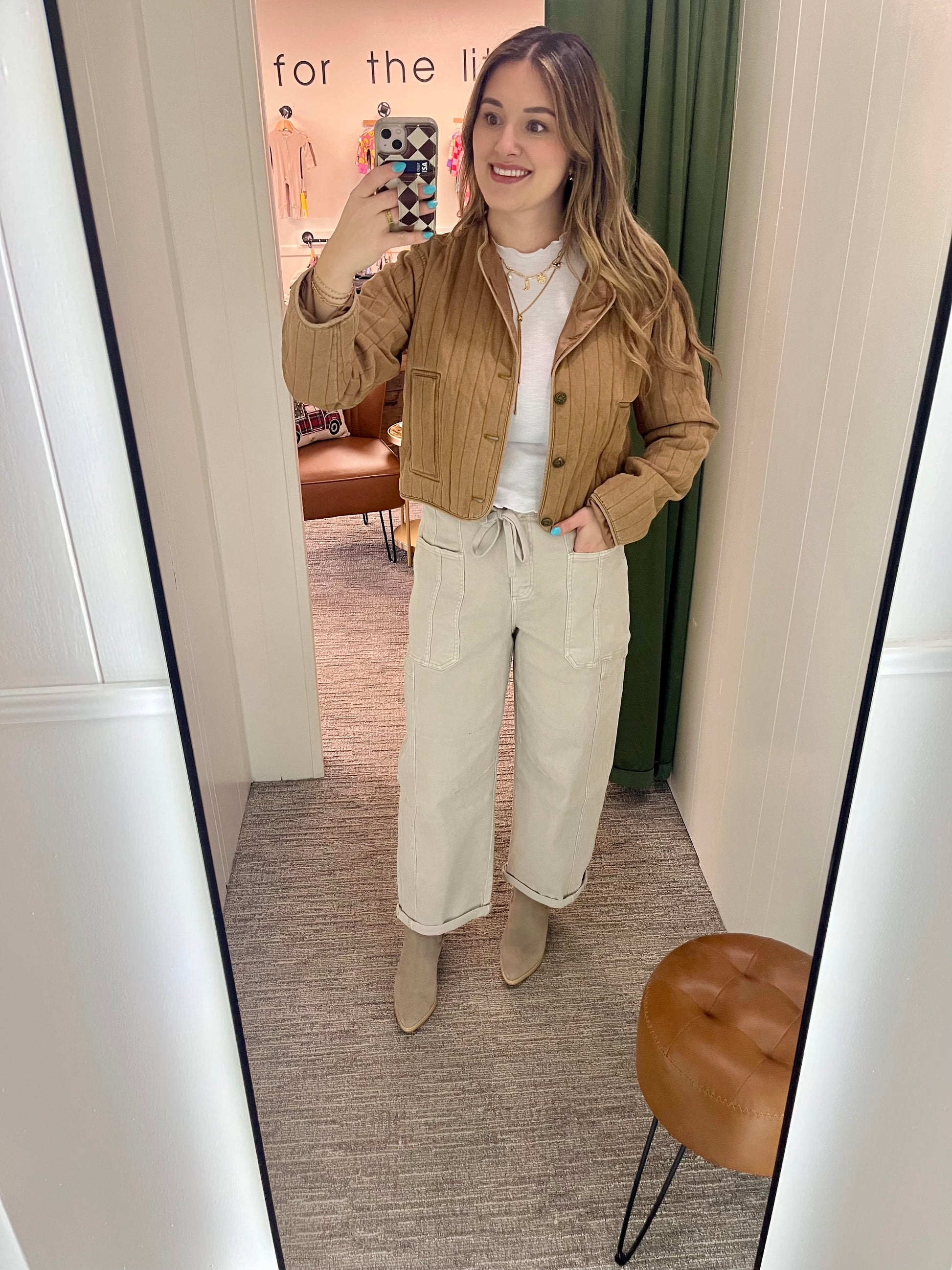 Our Rori Quilted Jacket features a vintage washed material and vintage buttons with a modern fit.
