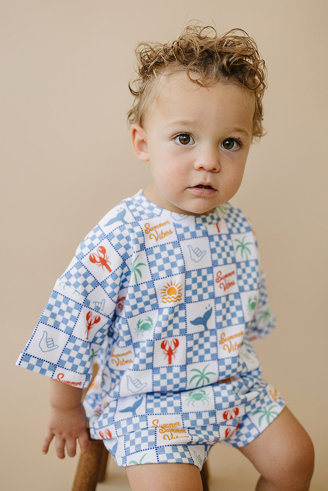Summer Vibes | Shorts Set brings all the coastal cuteness—with lobsters, suns, palm trees, and checkers in the mix.
